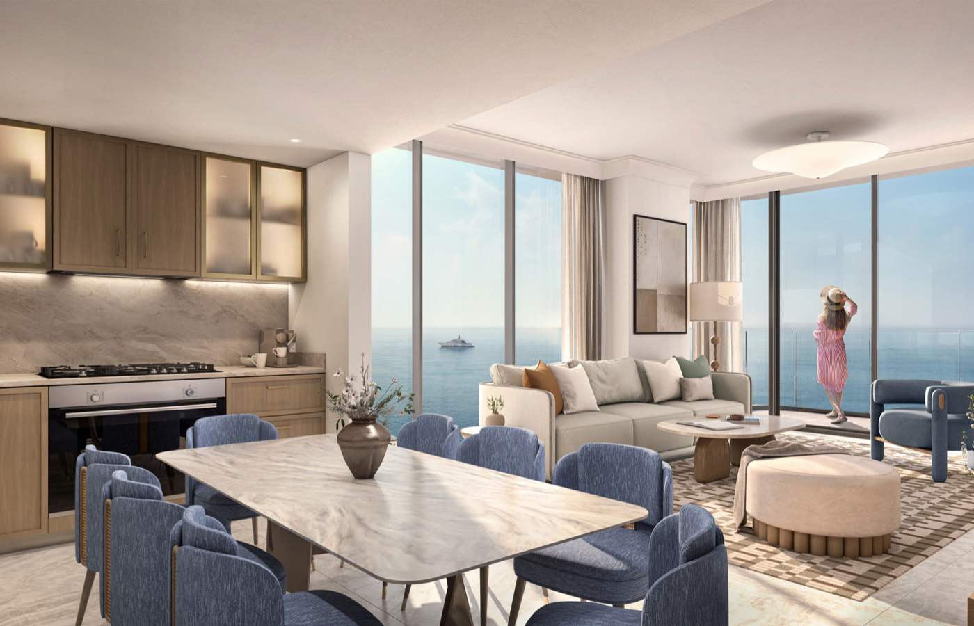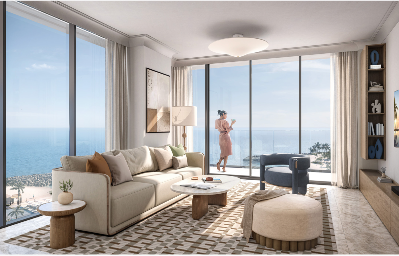 Firstly, Al Marjan Island delivers private beach frontage and panoramic sea views. In particular, this project occupies one of the island’s most desirable waterfront positions.